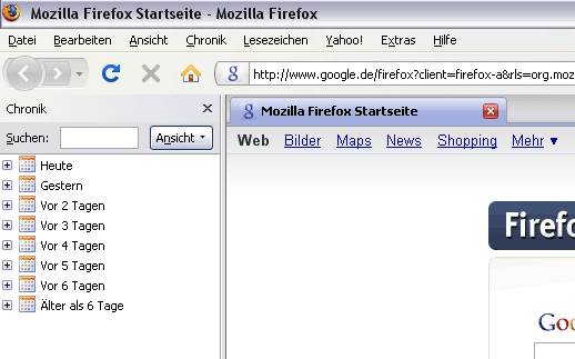 Im Browserverlauf, auch als Chronik oder History bezeichnet, werden die Adressen der besuchten Webseiten gespeichert, z.B. http://www.123meineip.de/. Die Speicherung erfolgt je nach Einstellung des Browsers für die letzten Tage, Wochen, Monate oder länger.